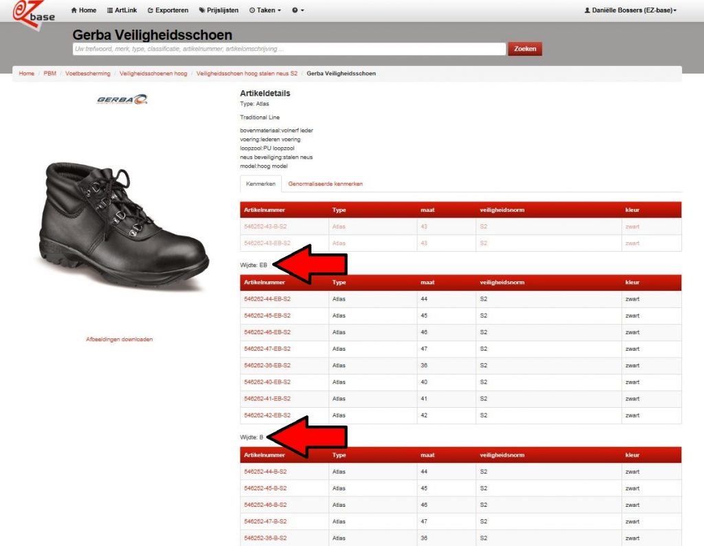 Les articles qui appartiennent à un groupe d’articles sont affichés dans un tableau. Pour s’y retrouver parmi les différences entre les lignes d’article, il est possible de sélectionner l’utilisation des sous-groupes. Cela clarifie l’affichage dans l’EZ-web en présentant les articles dans plusieurs tableaux. Dans l’exemple ci-dessous, veuillez trouver un tableau d’articles répartis en sous-groupe « Largeur ».