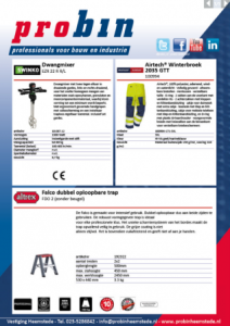 - U kunt een productblad klant specifiek maken door het toevoegen van klantgegevens (zoals logo en NAW).