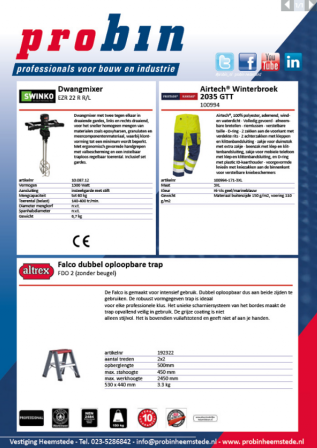 - Snel op de markt inspringen door het productblad op uw site te plaatsen of per e-mailing te versturen.